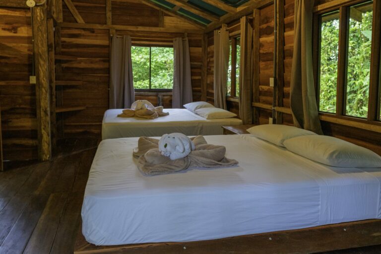 Situé au cœur de la forêt tropicale costaricienne, La Tigra Rainforest Lodge est un véritable écolodge. Fonctionnant exclusivement à l’énergie solaire, l’eau des douches peut parfois être légèrement tiède, illustrant l’engagement écologique du site.